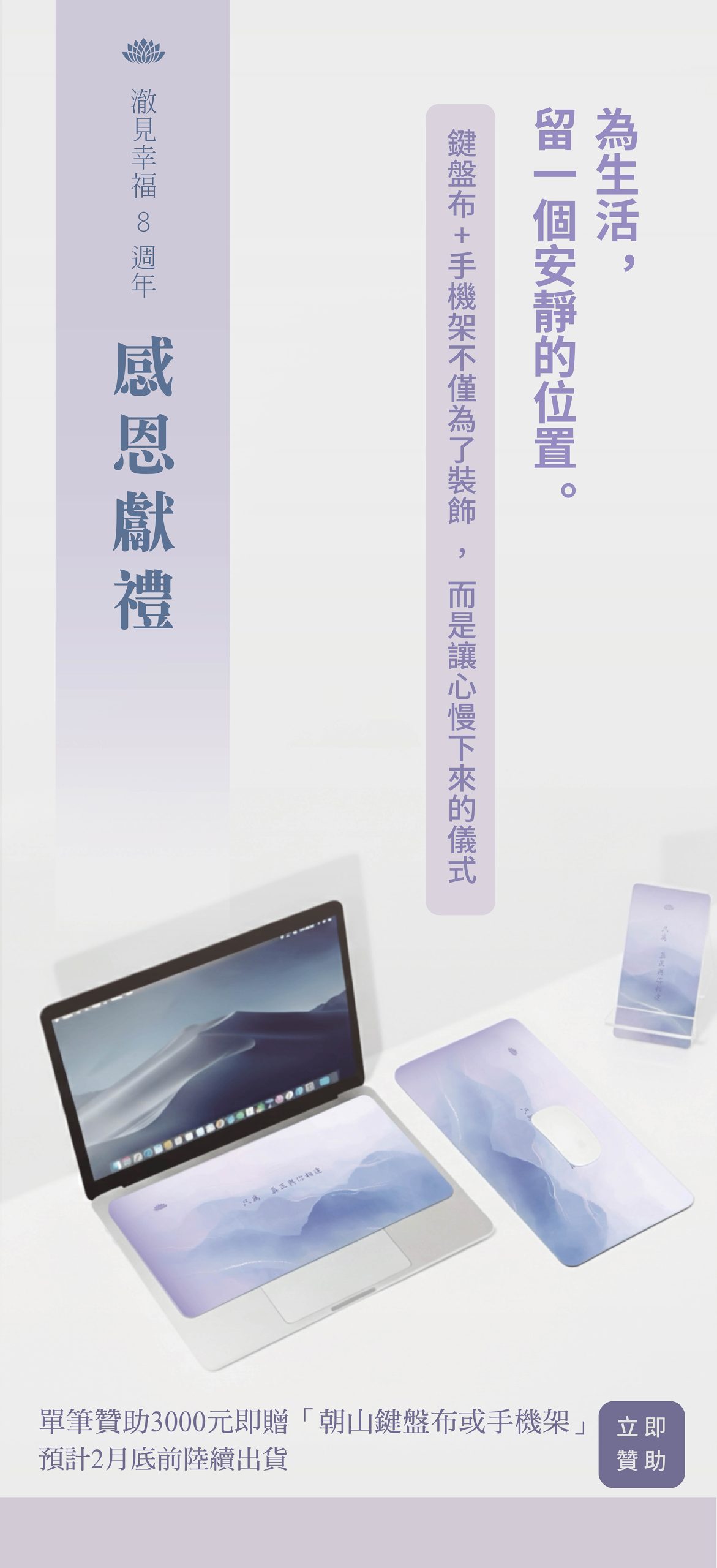 當鍵盤布、手機架,是一種生活的儀式感。讓自己無處安放的思念,用具體的行動表達出來,當思念師長的時候,把手機恭敬地架起來,打開app聽聞,朝山吧!把電腦鍵盤恭敬地掀開來,寫下師長的言教,朝山吧!